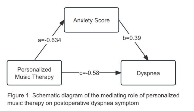 图1个性化音乐疗法对术后呼吸困难症状的中介作用示意图