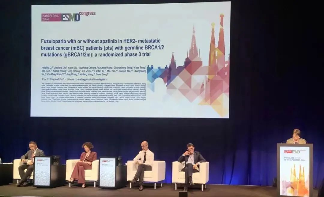 编者按:BRCA突变作为乳腺癌中一种虽不常见但极具挑战性的突变类型,其治疗一直备受关注。在2024年欧洲肿瘤内科学会(ESMO)年会上,北京大学肿瘤医院李惠平教授代表团队分享了BRCA突变HER2阴性乳腺癌患者治疗(FABULOUS研究)的成果,让我们看到了PARP抑制剂氟唑帕利联合抗血管生成小分子TKI阿帕替尼在BRCA突变乳腺癌患者中的疗效与安全性。肿瘤瞭望特邀李惠平教授就研究相关内容进行介绍。