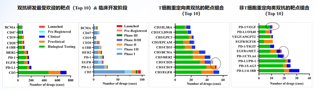 在研抗肿瘤双特异性抗体的临床开发进度和适应症分布