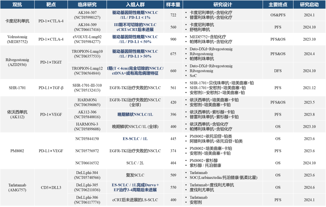 以PD-(L)1×CTLA-4为代表的双免疫检查点抑制的双抗,致力于开发PD-L1低表达或阴性晚期NSCLC人群,表现CTLA-4靶点的临床价值。