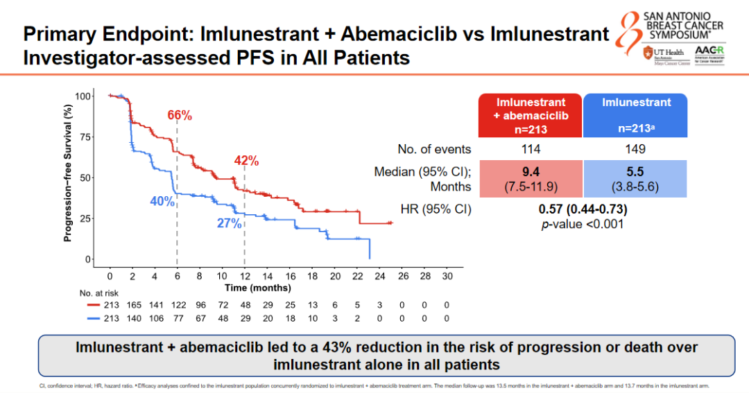 随着INAVO120临床研究结果的公布,似乎给我们带来了一个更好的答案。该研究入组了PIK3CA突变且HR+/HER2-乳腺癌术后内分泌治疗期间或术后内分泌治疗之后12个月内出现局部复发或远处转移尚未用过CDK4/6抑制剂患者,按1∶1随机分配到Inavolisib组(伊那利塞+哌柏西利+氟维司群)和安慰剂组(安慰剂+哌柏西利+氟维司群)接受一线治疗。结果显示,相较于安慰剂组,伊那利塞+哌柏西利+氟维司群患者的PFS延长了近一倍(中位PFS:15.0个月vs 7.3个月,HR 0.43,P<0.001)。该研究结果也提示我们,对于一线使用CDK4/6抑制剂的人群,未来似乎也需要做加法。对于真正的原发、继发内分泌耐药且存在PIK3CA突变的人群,我们应该优选CDK4/6抑制剂,在此基础上联合PI3K抑制剂+内分泌治疗也是不错的选择。