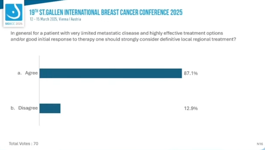 2025 SGBCC国际共识专家投票(五):局部复发乳腺癌治疗章节,寡转移性乳腺癌章节
