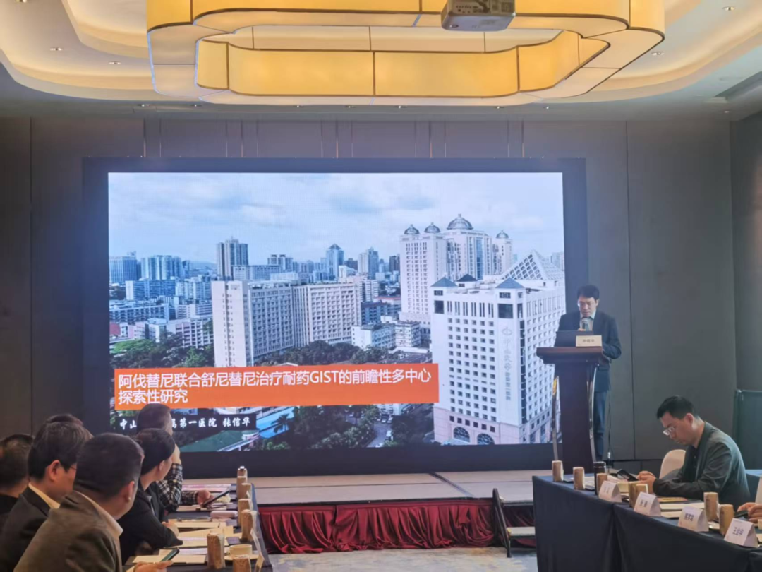 第三节由重庆医科大学附属第一医院张军教授主持,中山大学附属第一医院张信华教授分享了《阿伐替尼联合舒尼替尼治疗耐药GIST的前瞻性多中心探索性研究》,指出标准治疗失败以后GIST缺乏有效的后续治疗,阿伐替尼联合舒尼替尼对耐药GIST初具疗效,不良反应较明显,需注意动态剂量调整。因此构建精准化用药策略具有重要价值,针对两药联合合理给药剂量、优势获益人群筛选等关键问题,亟待后续通过扩大样本量及延长随访周期深入探索。