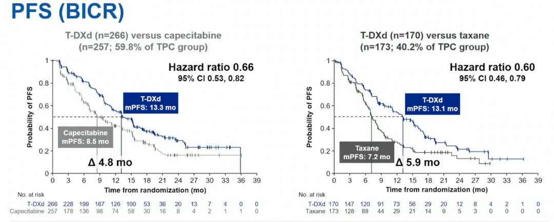 图1.T-DXd对比卡培他滨和紫杉类药物的PFS(BICR评估)