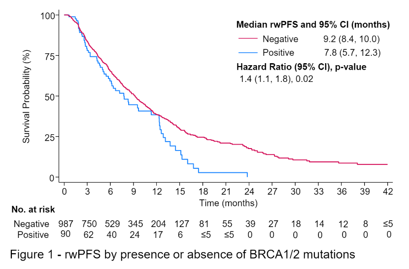 2025年ESMO BC年会上,丹娜-法伯癌症研究所的Paolo Tarantino教授团队展示了一项回顾性分析研究结果[3],该研究纳入了2019年12月至2023年1月期间开始使用T-DXd的治疗晚期乳腺癌患者数据,并提供了有关BRCA和/或PD-L1状态(22C3检测)的可用信息,深入分析了T-DXd在不同BRCA和PD-L1状态下的疗效,为乳腺癌精准治疗提供了新视角。研究显示,携带BRCA1/2突变的转移性乳腺癌(MBC)患者接受T-DXd治疗后的真实世界无进展生存期(rwPFS)明显短于BRCA野生型患者,而总生存期(OS)则无显著差异。此外,研究还发现,PD-L1状态对T-DXd治疗结局的影响在数值上虽有所体现,但差异无统计学意义。