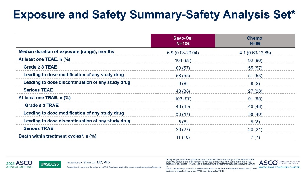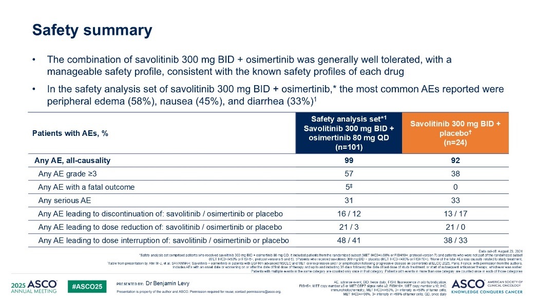 基于这一研究数据,目前国家药监局已批准赛沃替尼联合奥希替尼治疗奥希替尼耐药且携带MET基因异常的非小细胞肺癌患者。