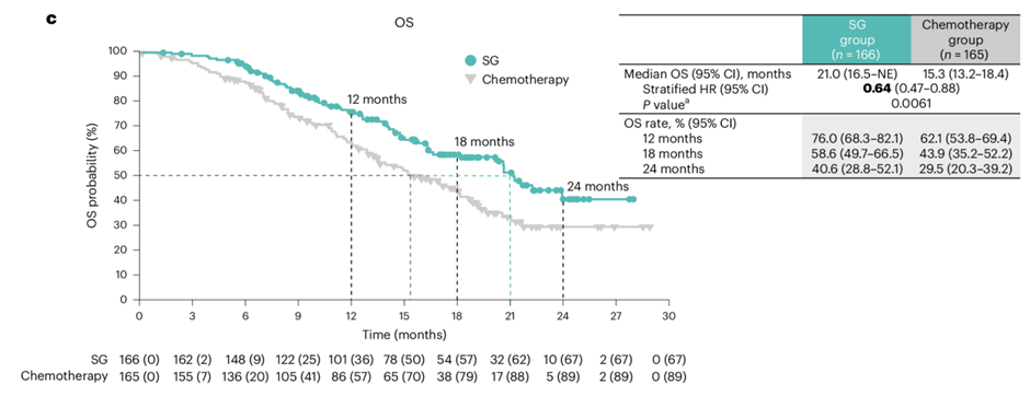 中位随访13.6个月显示,戈沙妥珠单抗较TPC改善了盲法独立中央审查(BICR)评估的mPFS,为5.5个月vs 4.1个月,HR 0.622(95%CI:0.457-0.846);研究者评估的mPFS为5.7个月vs 4.1个月,HR 0.550(95%CI:0.411-0.736);且各亚组获益一致。戈沙妥珠单抗为中国人群带来的PFS获益在绝对值方面及HR改善方面较整体人群具有优势趋势。