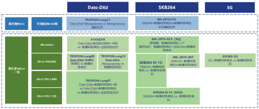 多项TROP2 ADC联合免疫治疗的III期临床研究在初治的驱动基因阴性晚期NSCLC中正在开展,有望明确TROP2 ADC联合免疫在前线治疗的地位,为患者提供免化疗的治疗选择。SKB264、Dato-DXd和SG等药物的III期数据值得期待。
