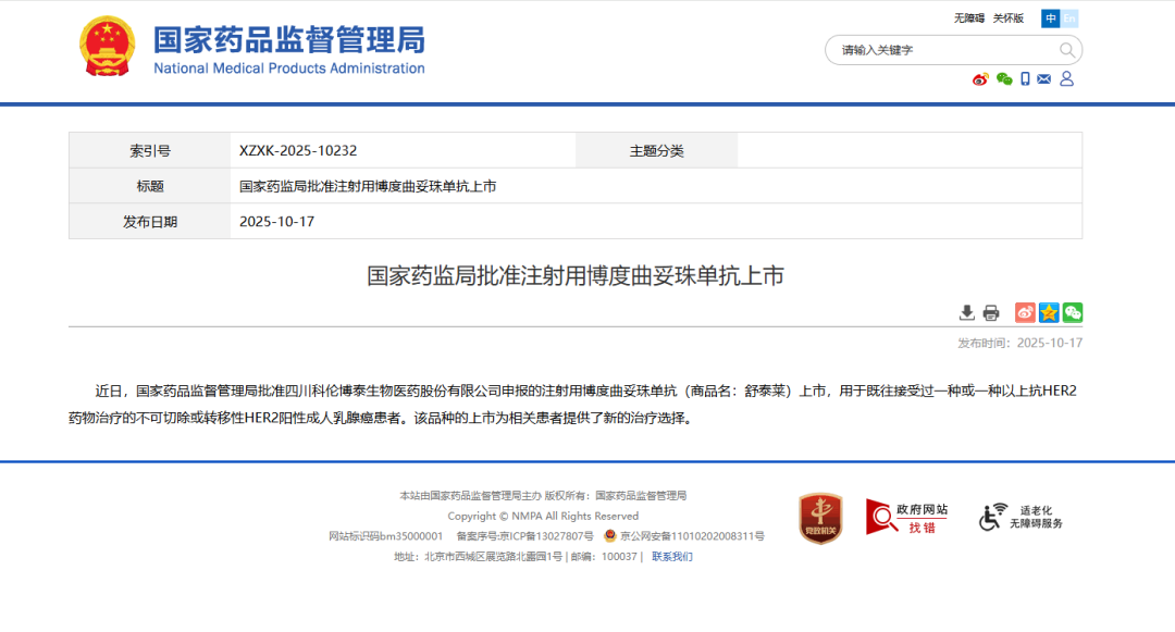 图1.博度曲妥珠单抗获批上市信息