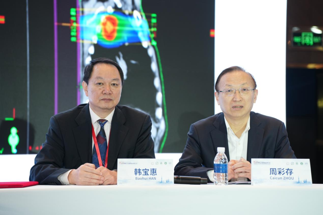 随即主旨大会学术环节,首先,在韩宝惠教授、同济大学附属东方医院周彩存教授主持下,山东省肿瘤医院邢力刚教授以《早期非小细胞肺癌立体定向放疗的进展与挑战》为题作报告。他指出,立体定向放疗(SBRT)凭借精度高、剂量分布高度适形、正常组织受照剂量低、总疗程短等物理学优势,已成为不可手术或拒绝手术患者的标准治疗方式,多中心临床研究证实其局部控制率和总生存率优于常规放疗。随着放疗设备迭代,图像引导、自适应放疗、核磁引导及质子重离子技术的应用,进一步提升了治疗精度。同时,他剖析了当前挑战,包括与外科手术、微创治疗的疗效对比,包括纵隔淋巴结复发及远处转移等问题,以及SBRT联合免疫治疗因毒性等导致部分临床试验阴性的现状。最后强调,需在物理精准基础上,通过分子检测实现生物精准,以进一步提高早期非小细胞肺癌的治愈率。
