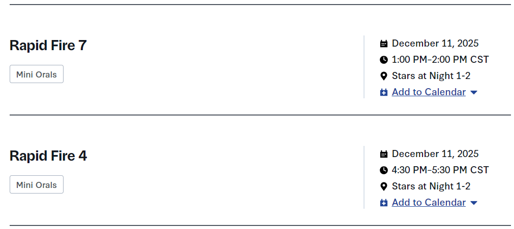 两场Mini口头报告:1、Rapid Fire 7;2、Rapid Fire 4。