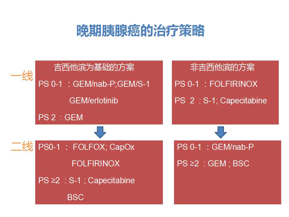 目前“有效的”胰腺癌治疗方案有:①吉西他滨(GEM)为基础的方案:GEM、GEM+白蛋白紫杉醇、GEM+厄洛替尼。②非GEM方案:FOLFIRINOX、氟尿嘧啶类药物如替吉奥、卡培他滨等。