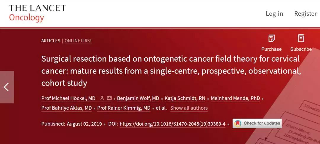 [3]Höckel M Wolf B Scmidt K et al.Surgical resection based on ontogenetic cancer field theory for cervical cancer: mature results from a single-centre, prospective, observational, cohort study.Lancet Oncol. 2019; published online Aug 2.http://dx.doi.org/10.1016/S1470-2045(19)30389-4