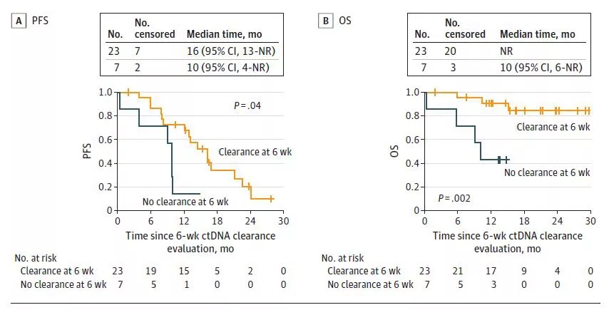 图4. 患者ct-DNA是否清除与预后之间的关系