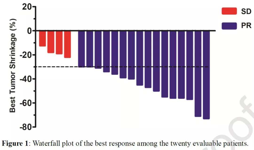 全组患者中位随访18.4个月,患者ORR达80%,DCR为100%(图1)。