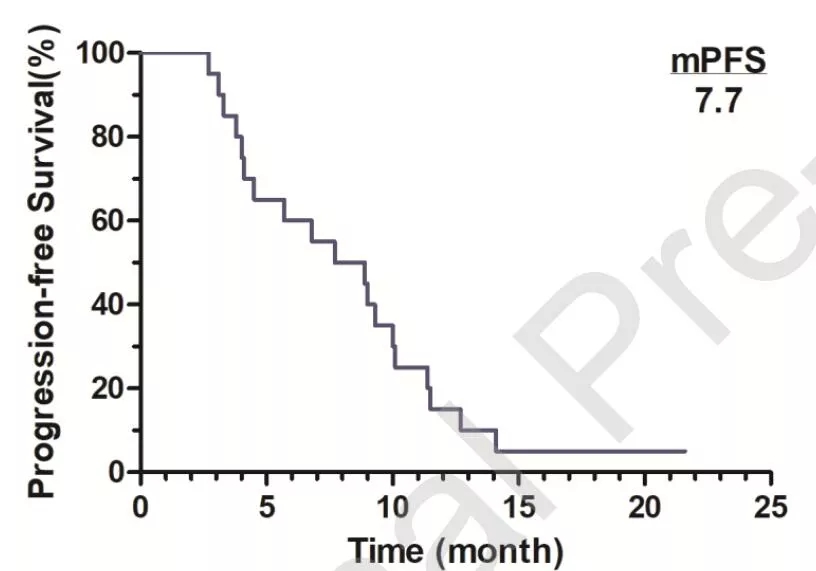 全组中位PFS为7.7个月(图2)。