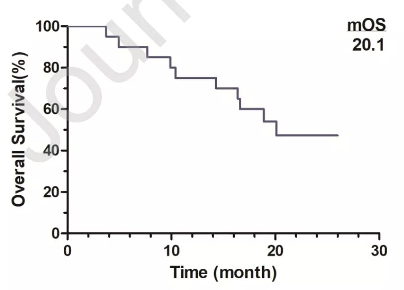 患者中位OS为20.1个月,12个月OS率达75%(图3)。
