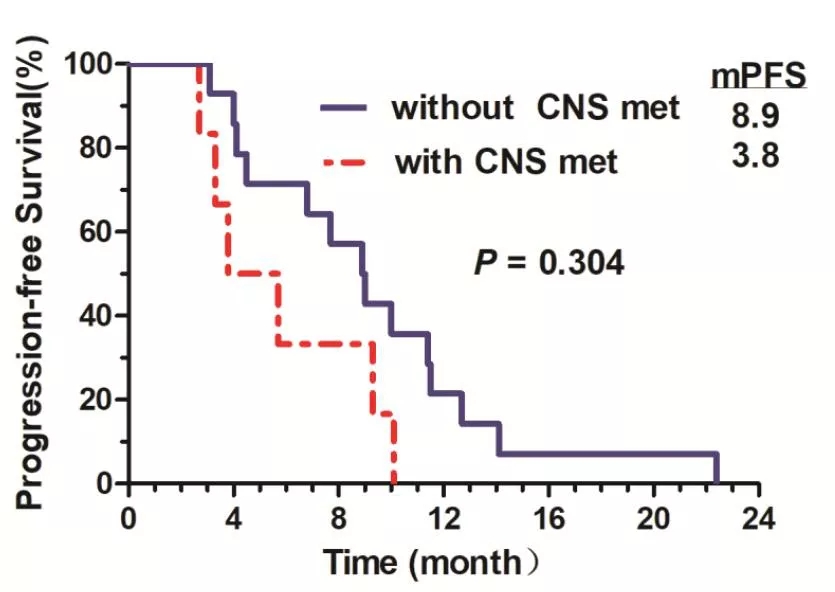 图4. 基线有无CNS转移患者的中位PFS