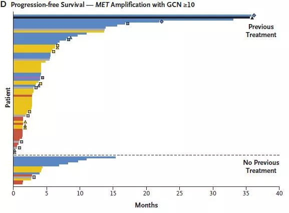 图5. 扩增患者接受卡马替尼治疗后的瀑布图