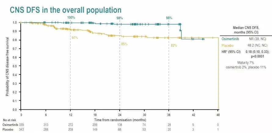 研究结论:奥希替尼治疗降低82%的CNS病灶复发率,这项研究结果支持奥希替尼用于IB-IIIA期EGFR突变阳性NSCLC患者肿瘤完全切除后辅助治疗,可降低患者的CNS复发风险。