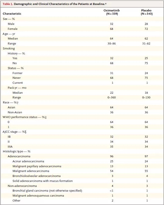 三代EGFR-TKI用于肺癌辅助治疗,ADAURA研究全文编译