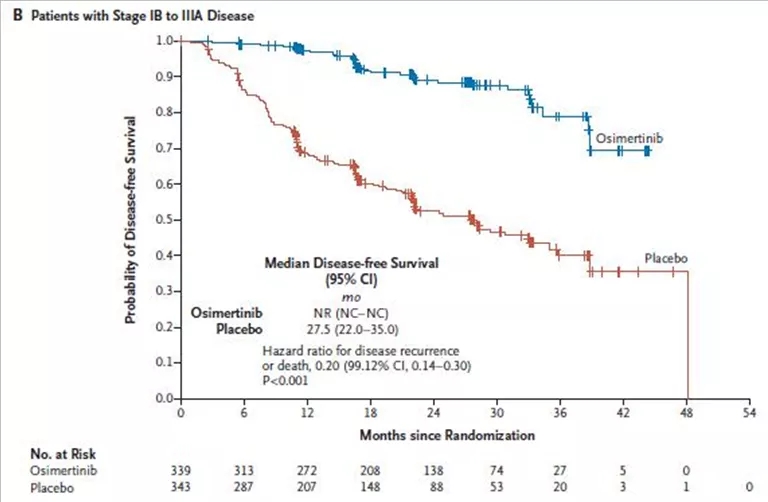 在携带EGFR敏感突变的1b-3a期非小细胞肺癌患者,接受奥希替尼术后辅助治疗较安慰剂可显著改善患者的远期生存。