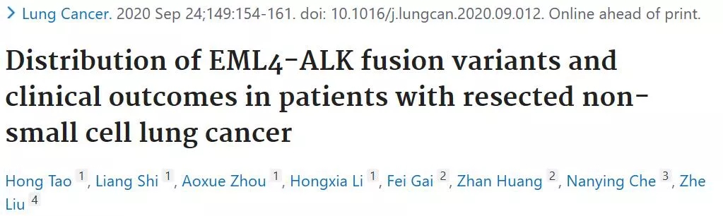 手术切除的肺癌患者,EML4-ALK的融合变异体特点及预后