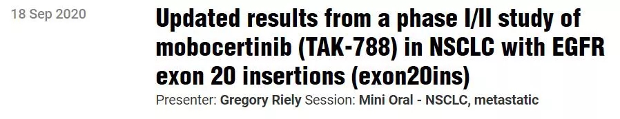 TAK-788治疗EGFR第20外显子插入突变的晚期非小细胞肺癌患者:一项I/II期临床研究(摘要号:1261MO)