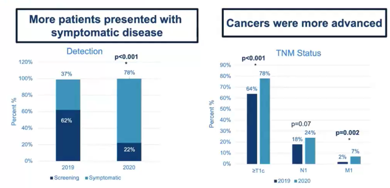 研究者对2020年3月17日(开始实施SiP)至2020年5月18日(恢复择期手术)期间新诊断的279例患者进行了回顾性研究,并与2019年3月17日至2019年5月18日之间确诊790例患者在年龄、组织学、解剖分期特征、分级、受体状况和初始治疗进行了比较。对于接受手术的患者,比较了从活检到手术(TTS)的时间和手术类型。