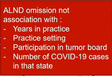 研究者采用标准化调查开发框架,进行了一个横断面的包含30个项目的调查。这项调查于2020年5月8日至6月12日对两个国家合作组织(联盟和SWOG)的医学肿瘤学家(MO)、放射肿瘤学家(RO)和外科医生(SO)进行抽样调查,并通过连锁转诊进一步参与。在大流行之前和期间,向被调查者医生提出了有关新辅助内分泌治疗使用的一般性问题。根据新辅助内分泌治疗的持续时间,如果在前哨淋巴结活检中发现1枚微转移淋巴结,则询问他们是否倾向于在新辅助内分泌治疗后豁免腋窝淋巴结清扫(ALND)。