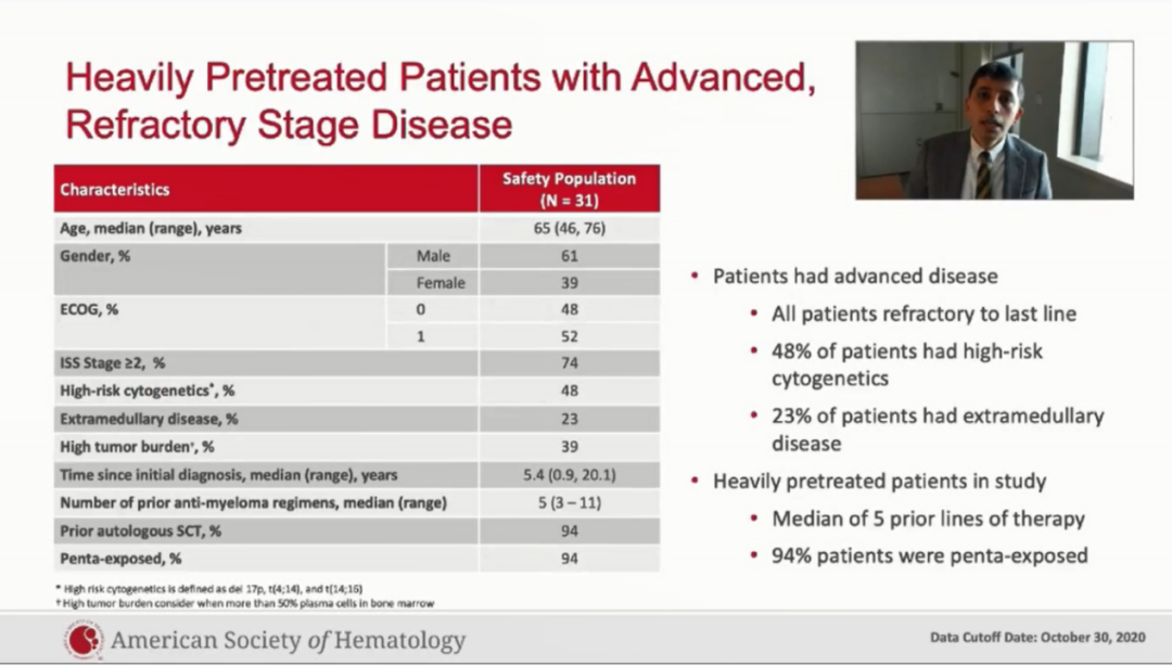 截至2020年7月8日,共纳入19名病人,其中15名接受3种药物剂量水平(DL)的ALLO-715:3名患者接受DL1(3 FCA and 0 CA); 7个患者接受DL2 (4 FCA and 3 CA); 5个患者接受DL3 (3 FCA and 2 CA)。截止观察时没有患者接受FCA+方案或 ALLO-715 DL4剂量。患者在入组时都处于疾病的进展阶段(既往治疗线数为5(范围:3-11))且31.6%的患者在国际分期系统(ISS)中处于III期,入组前均进行预处理。其中有1例患者既往接受过自体干细胞移植治疗。