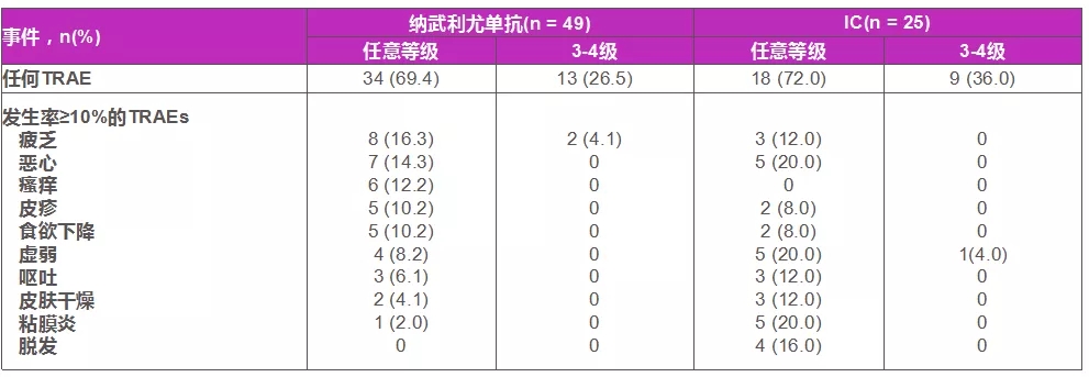 纳武利尤单抗联合卡铂/紫杉醇的耐受性良好。