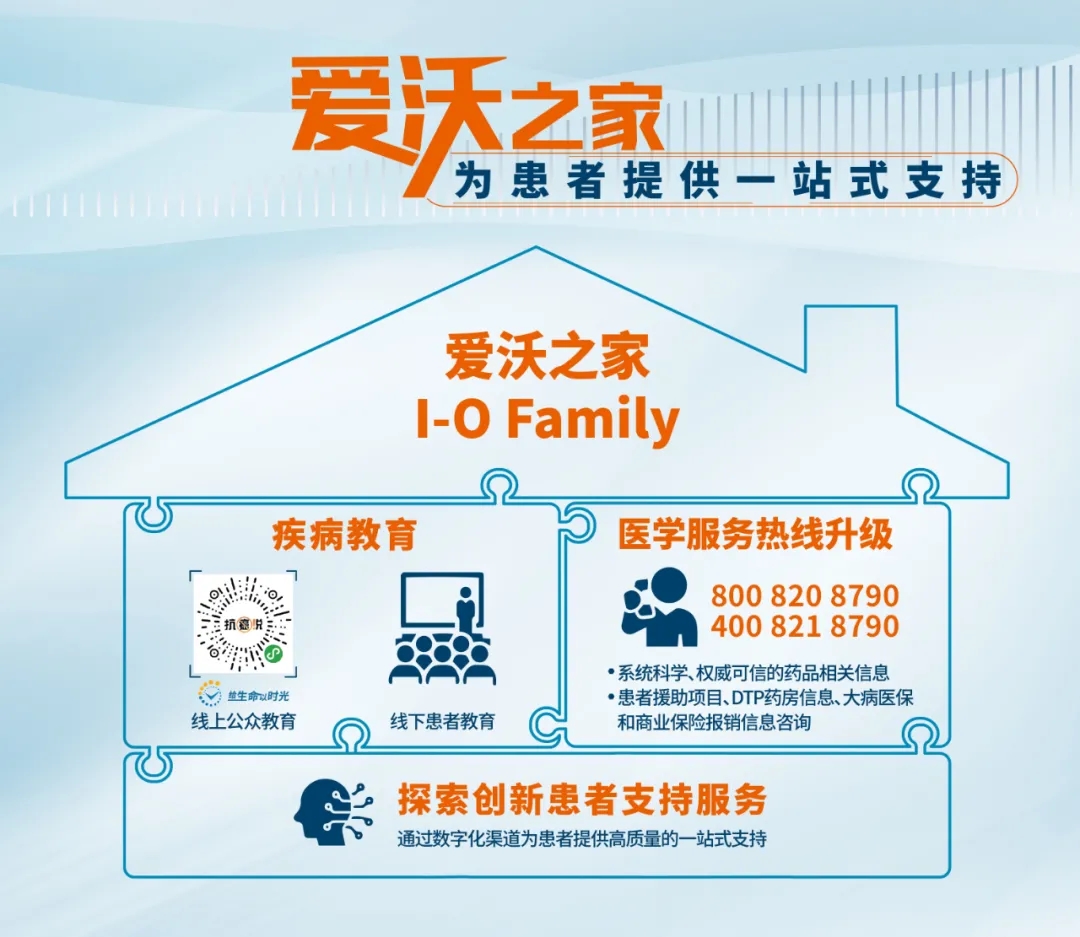 除了提高创新药物可及性,患者在诊治过程中还存在诸多未被满足的需求,如医疗服务升级、治疗关护等方面。为此,百时美施贵宝将为患者搭建“爱沃之家”的平台,除了向患者提供科学、正确、全面的疾病教育外,还将通过医学服务热线(800 820 8790或400 821 8790)的升级,为患者提供系统科学、权威可信的药品相关信息,并就患者关注的患者援助项目、DTP药房信息、大病医保和商业保险报销等内容提供相关信息咨询。未来,还将通过数字化渠道继续探索创新性的患者支持服务,以期为患者在治疗过程中提供高质量的一站式支持。