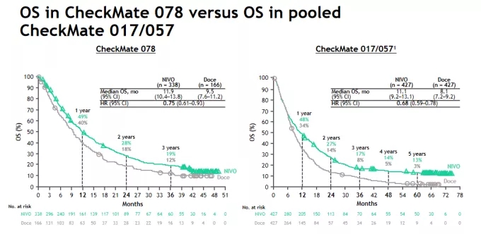 纳武利尤单抗是首个且目前唯一在中国获批二线非小细胞肺癌适应证的PD-1抑制剂,在2020 CSCO指南中,纳武利尤单抗单药被推荐为无驱动基因NSCLC二线治疗方案(Ⅰ级推荐,1A类证据)。2018年6月,纳武利尤单抗获批用于治疗EGFR/ALK阴性、既往接受过含铂化疗后疾病进展或不可耐受的局部晚期或转移性NSCLC成人患者,开启了国内肿瘤免疫治疗的新时代。其注册临床研究CheckMate-078中,中国患者超过90%。结果显示,纳武利尤单抗二线治疗完胜化疗。以下介绍2020 CSCO年会公布的CheckMate-078的3年随访数据。