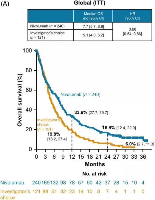 纳武利尤单抗二线治疗的OS获益
