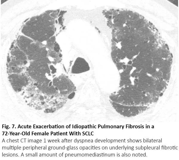 图7. 一位72岁的小细胞肺癌女性患者出现特发性肺纤维化急性加重