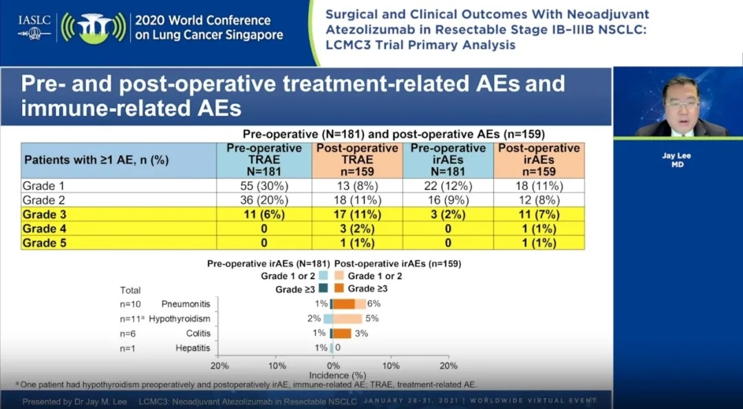 3. Surgical and Clinical Outcomes With Neoadjuvant Atezolizumab in Resectable Stage IB–IIIB NSCLC: LCMC3 Trial Primary Analysis. Presented at: 2020 World Conference on Lung Cancer Singapore. January 28-31, 2021. PS01.05.