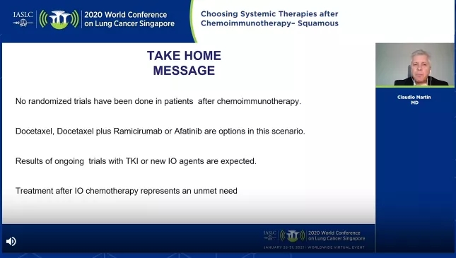 ESMO或NCCN指南中,除了批准用于复发性NSCLC鳞癌患者的免疫治疗药物外,其他的选择是“过时的”药物,如多西他赛、吉西他滨或雷莫芦单抗+多西他赛。在某些情况下,患者甚至可能得不到治疗。KEYNOTE-407比较化疗+帕博利珠单抗一线治疗SCC以及IMPower-131比较化疗+nab-紫杉醇±阿替利珠单抗的数据显示,只有大约30%患者在复发后接受后续治疗,其中大多数患者接受化疗。6,7