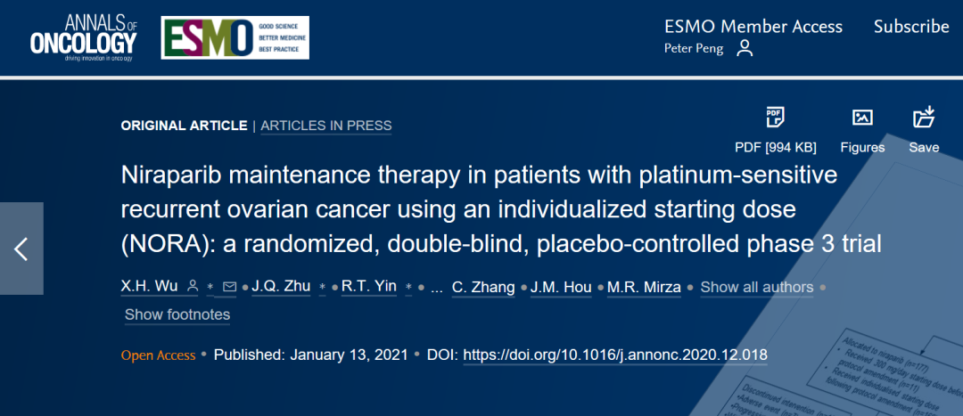 近日,由复旦大学附属肿瘤医院肿瘤妇科主任吴小华教授领衔的一项国家1类新药NORA研究成果“尼拉帕利在铂敏感复发卵巢癌患者中的个体化起始剂量研究:一项随机、双盲、安慰剂对照III期临床研究”,已在线发表于国际知名权威医学期刊《肿瘤学年鉴》(Annals of oncology,IF=18.274)。吴小华教授是论文的第一作者兼通讯作者。