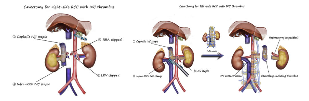 图6:右侧/左侧RCC癌栓下腔静脉切除术示意图