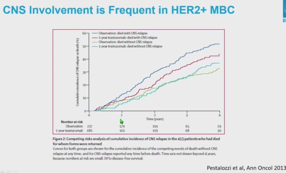 图. HER2阳性转移性乳腺癌CNS累及情况
