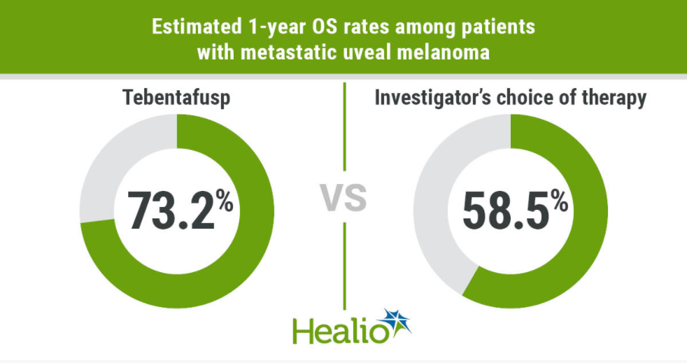 在转移性UM的一线治疗中,tebe单药治疗显著改善OS;这是第一个可改善转移性UM生存的研究。