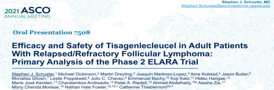 热血碧涛谈·ASCO特辑丨ELARA研究探索Tisagenlecleucel在成人复发难治滤泡性淋巴瘤的有效性及安全性分析