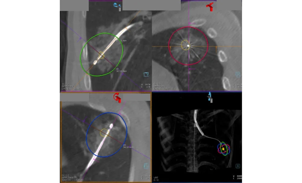 肺癌经支气管微波消融:通过锥形束CT确定探针相对于目标结节的位置