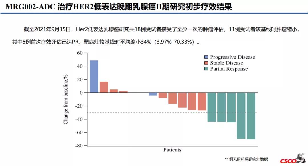 2021年9月26日,CSCO学术年会创新诊疗专场中,CSCO大会秘书长解放军总医院江泽飞教授发布了题为《新型抗体偶联物(MRG002-ADC)治疗HER2低表达晚期乳腺癌的多中心Ⅱ期研究》的重要报告,为未来HER2阳性乳腺癌定义的改变及诊疗带来了新的思考。
