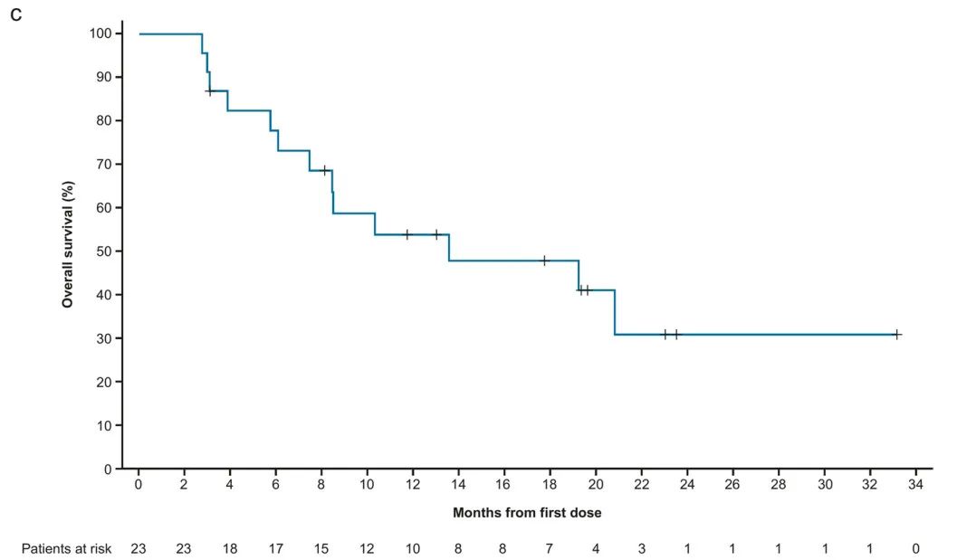 纳入疗效评估的23例RET融合阳性肿瘤患者的总生存