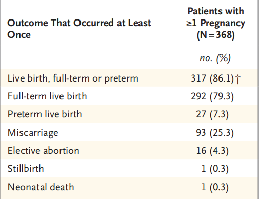 表1.研究中至少有一次妊娠的患者的妊娠结局