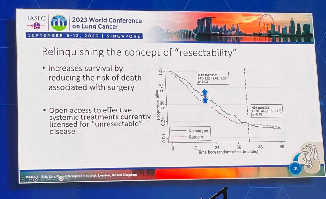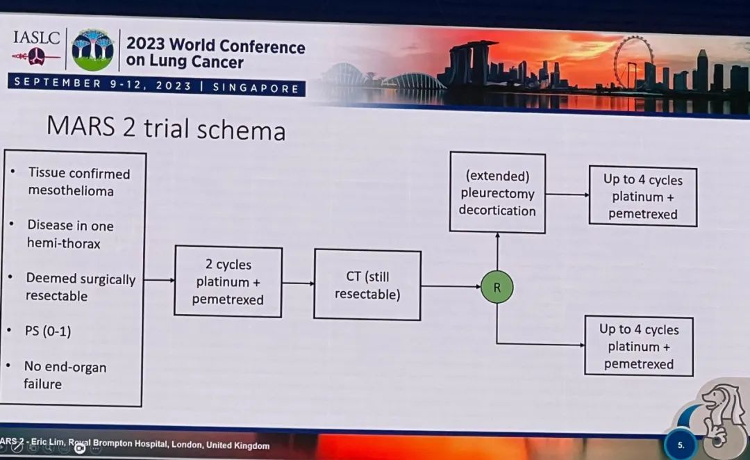 我的第二个切身感受是,大家在追求学术的道路上不断往前迈进。在全体大会3主席研讨会上,我印象最深的是讨论胸膜间皮瘤新辅助化疗联合手术的MARS2研究(摘要号PL03.10),这项研究将胸膜切除术联合化疗与单纯化疗进行比较。我认为这项研究的实际开展相当困难,因为入组患者也不多,还需要进行新辅助化疗,然后再手术,尽管研究获得了阴性结果,但也体现了胸部肿瘤专家为了学术进步和患者福祉付出的努力和开展的工作。