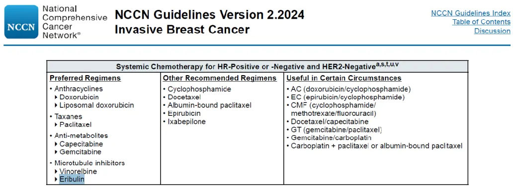 △NCCN指南2024 v2推荐艾立布林为优选化疗方案之一