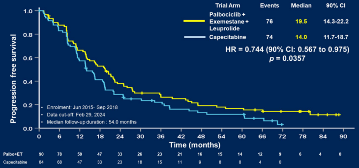 Dr.Yeon Hee Park:The overall survival results were quite impressive.The Palbociclib arm showed a median overall survival of 54.8 months,compared to 57.8 months for the Capecitabine arm.While the survival rates are close,the progression-free survival and the consistency of the PFS benefit in the Palbociclib arm highlight its effectiveness.